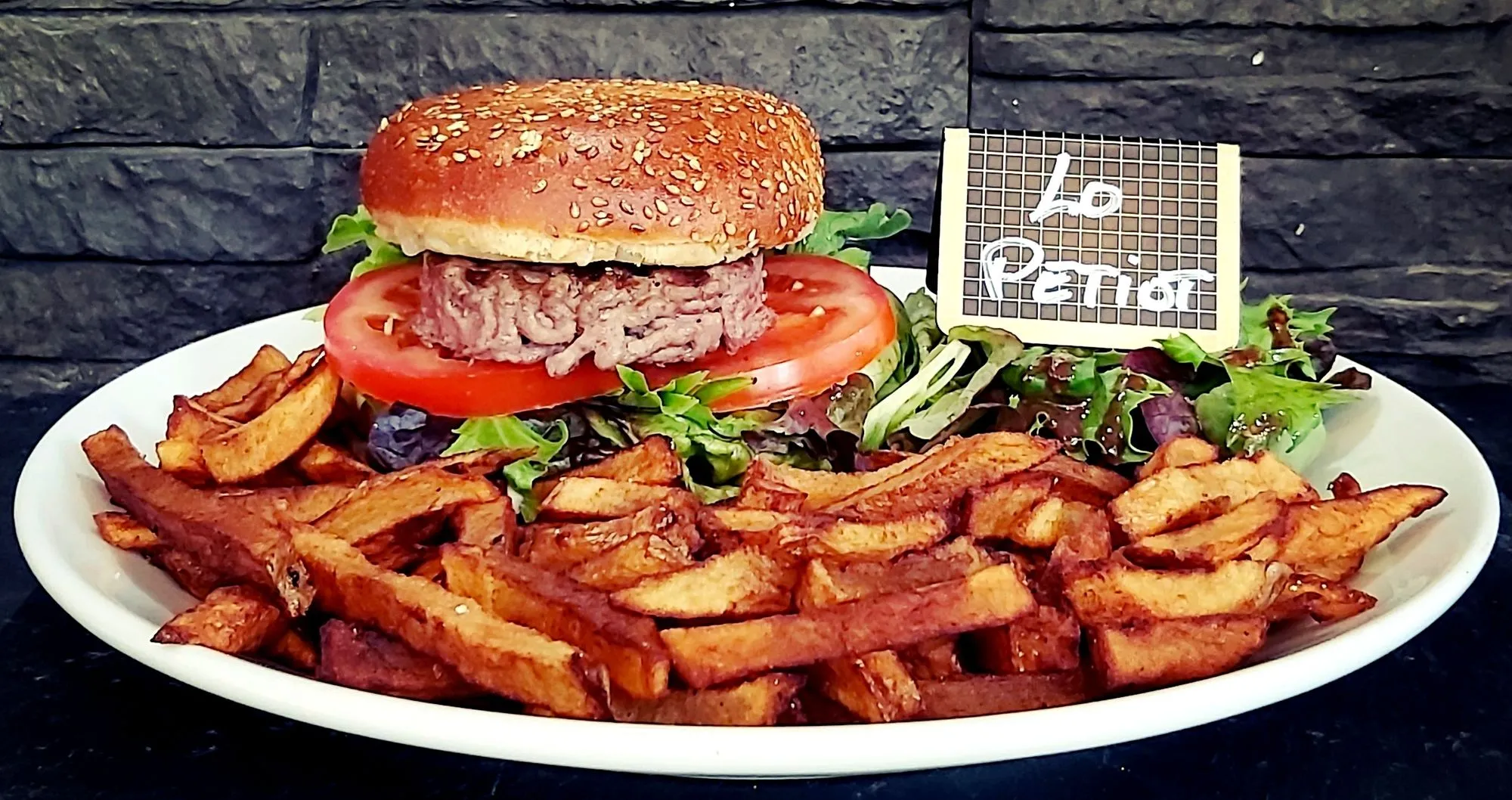 Burger Bun With A Charolais Burger, Mature Cantal AOP, Tomatoes, Fresh Lettuce, Topped With A Farmhouse St Nectaire Cheese AOP Sauce.